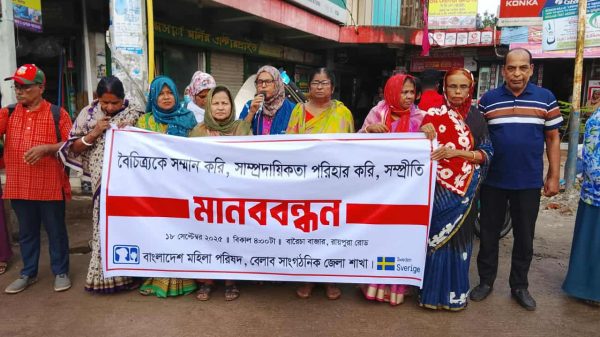বেলাব প্রতিনিধিঃ “বৈচিত্র্যকে সম্মান করি, সাম্প্রদায়িকতা পরিহার করি, সম্প্রীতি বজায় রাখি” এই স্লোগানকে সামনে রেখে বাংলাদেশ মহিলা পরিষদ বেলাব সাংগঠনিক জেলা শাখার উদ্যোগে এক মানববন্ধন অনুষ্ঠিত হয়েছে। আজ বৃহস্পতিবার (১৮ ...বিস্তারিত পড়ুন